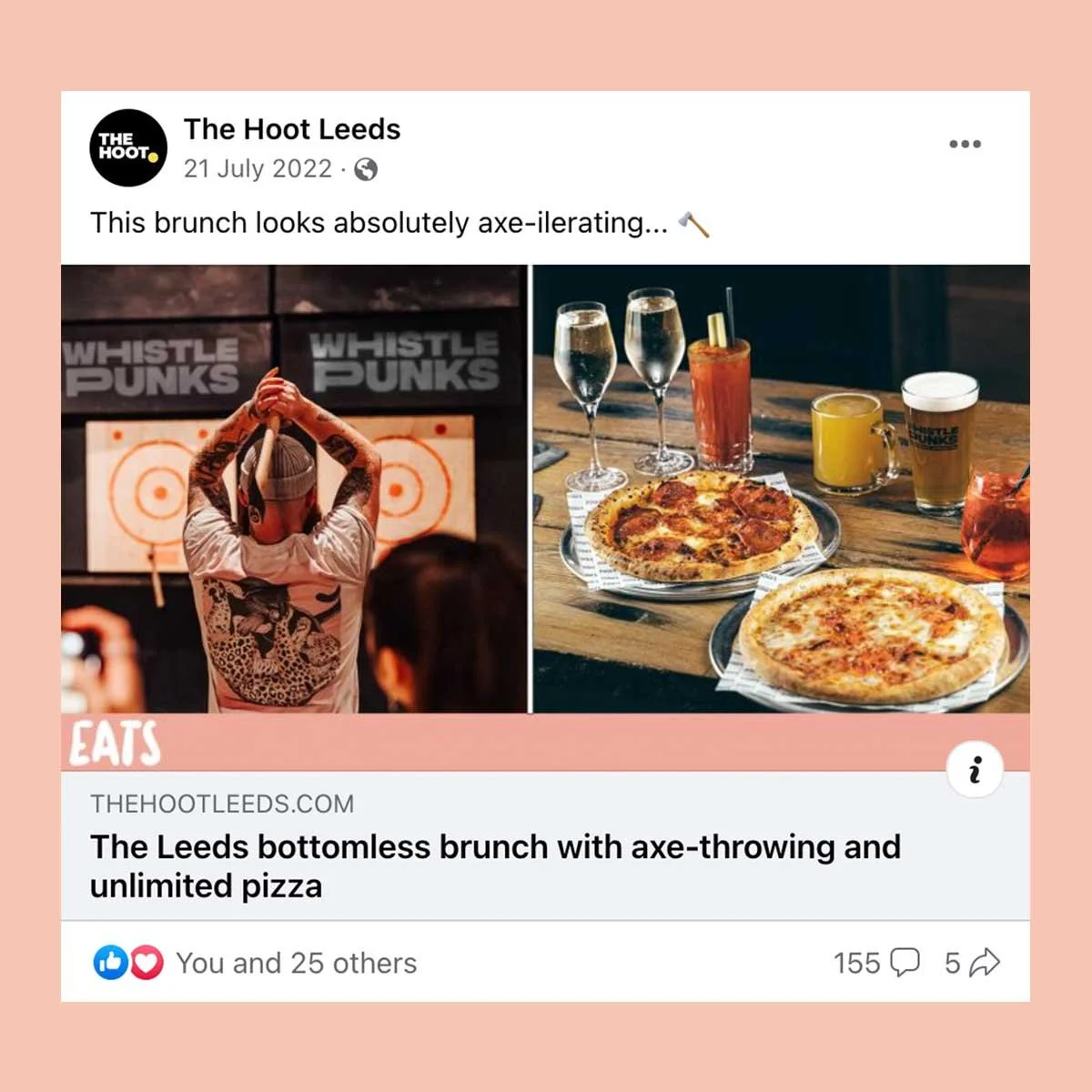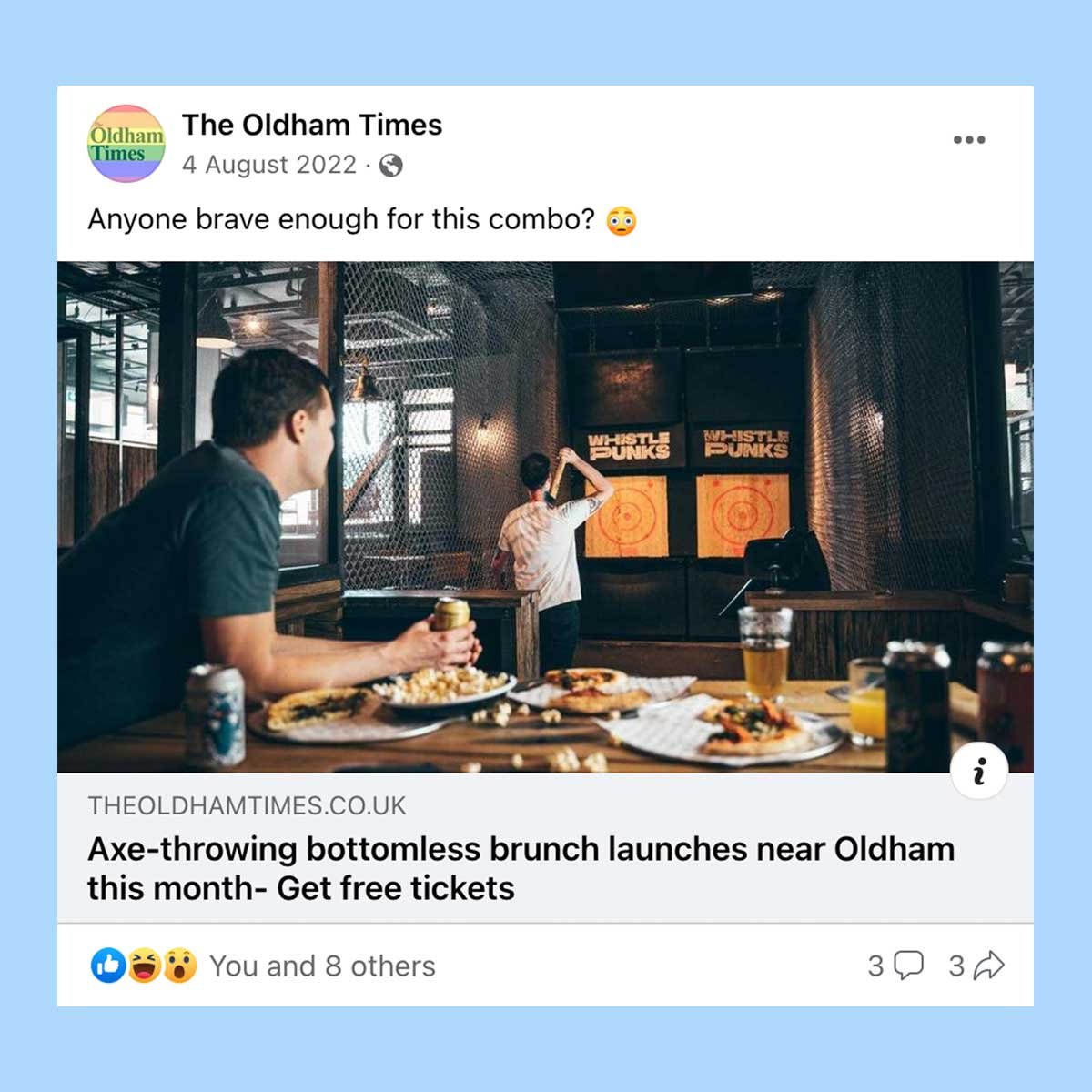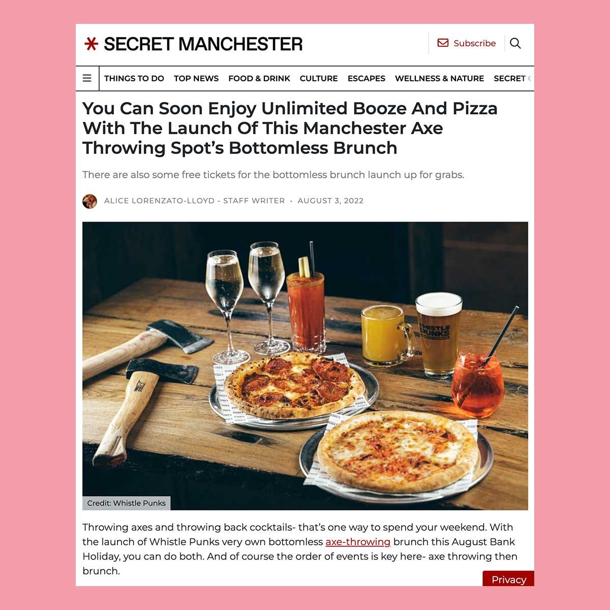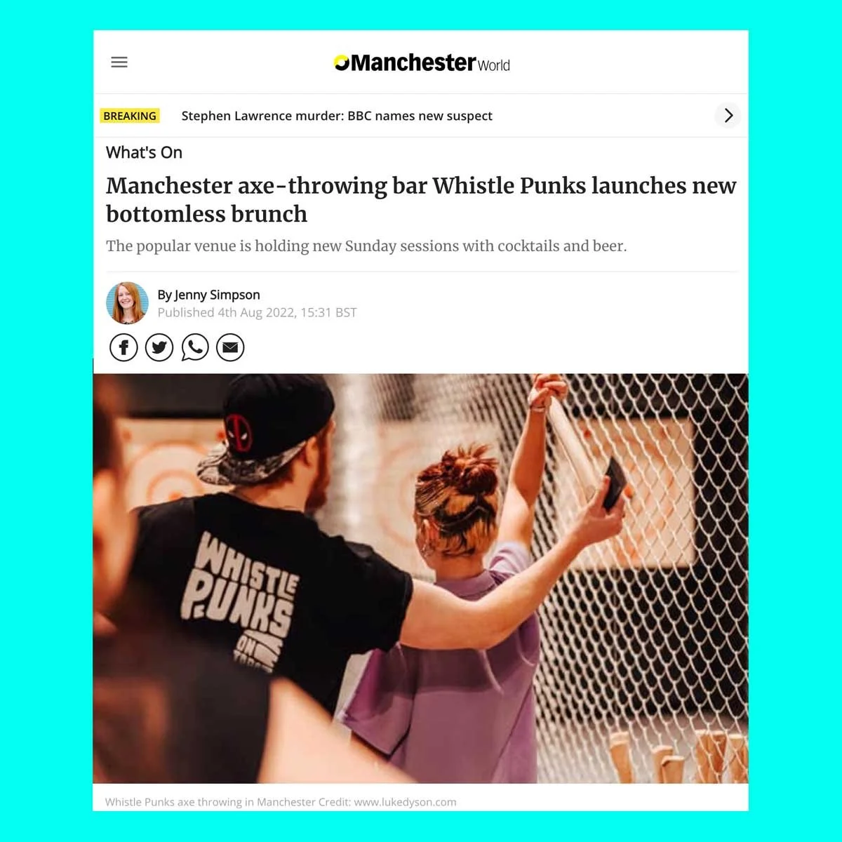 "Cocktail bars get an edge at Whistle Punks’ new axe-throwing venue. The new 7,000 sq ft site, costing about £1 million, is in a former Busaba Eathai restaurant. It will have nine lanes, a bar serving cocktails, craft beers and ciders plus a kitchen serving sourdough pizza."